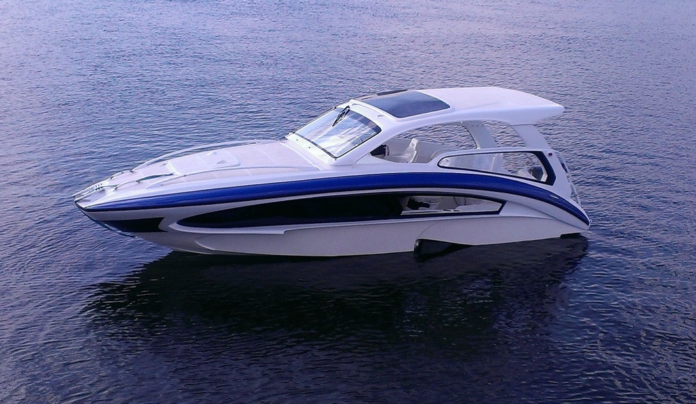 | Корпус пластиковый в стандартной окраской. Белый низ + Синяя полоса вдоль борта и поверх иллюминаторов |